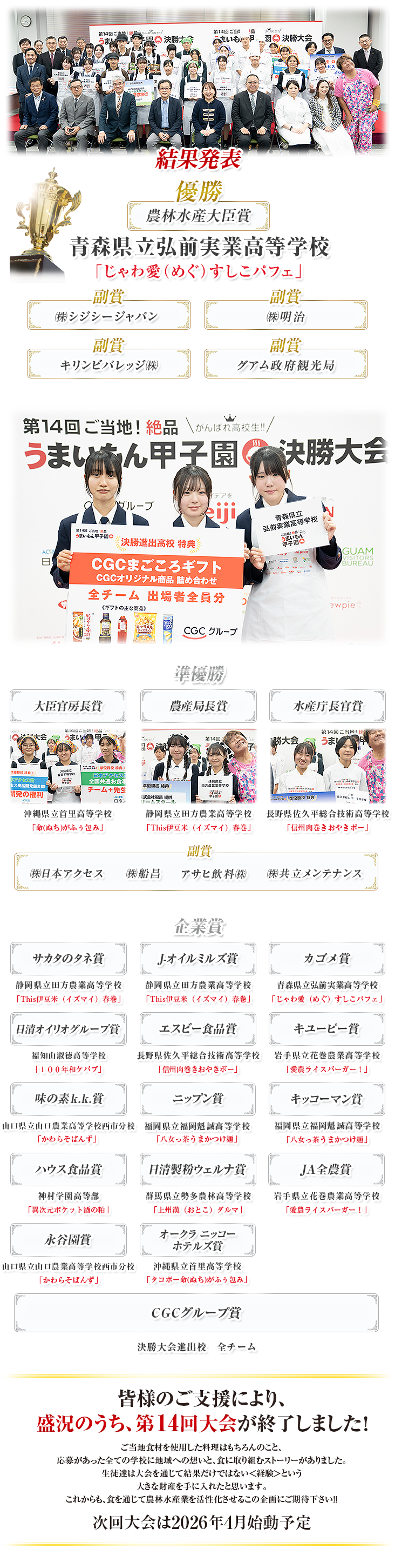 啓明学館高等学校 料理の名前がかっこいいですね。応援します。